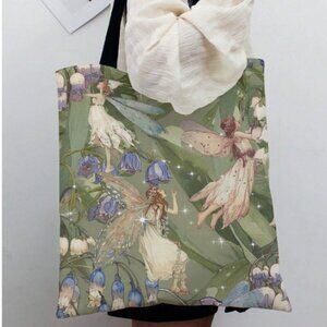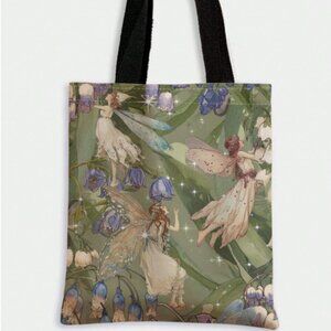 Fairycore Fairy Print Double Side Double Handle Linen Bag Romwe NWT