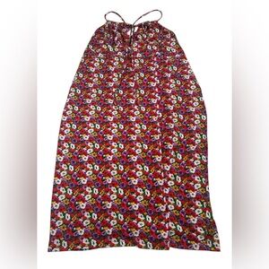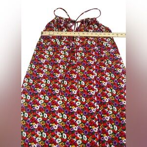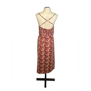 Stylish floral maxi dress featuring a vibrant red base with white and yellow flowers. Criss cross in the back. Beautiful cotton sundress. Perfect for a casual day out or a summer event.