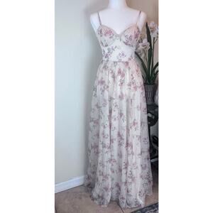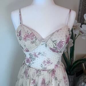 Fairycore Floral Sheer Glittery Sweetheart Spaghetti Straps City Studio Dress S