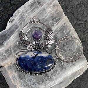 Fairycore Floral Sodalite and Amethyst Pendant Stone Crystal Jewelry