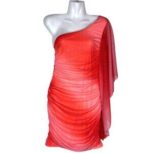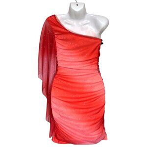 Fairycore One Shoulder Bodycon Party Dress Size M Orange Pink Ombe Glam Gala