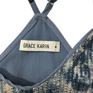 Fairycore Sequins Tank Top Women’s Sz M Festival Blue Sparkle Shimmer