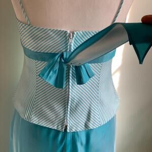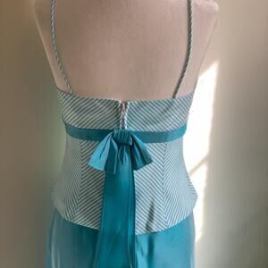Fairycore Two Piece Dress Small Blue Striped Bustier Top Midi Skirt Prom Formal