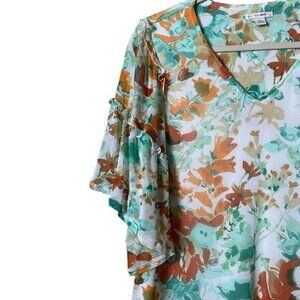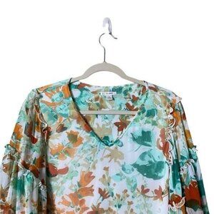Fairycore Women Flowy Ruffle Blouse Medium Romantic Feminine Bell Sleeves Floral