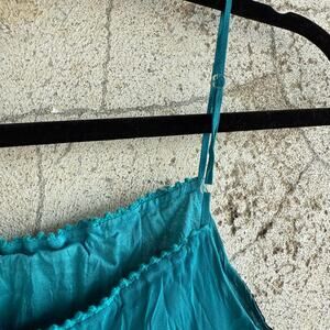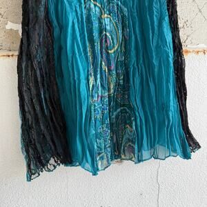 Fairycore Y2K Boho Flowy Top Sheer Lace Trim Teal Paisley Crinkle Size Small
