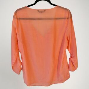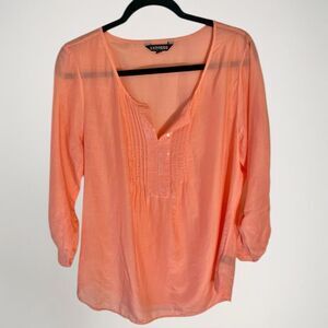 Fairycore Sheer Tunic Blouse Womens L Express Coral Pleated Roll Tab Coquette Chic Tropical Summer Romanic Beach Vacation!
