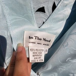 Dress and jacket set from In The Mood. Beautiful soft teal color. Jacket features a cut out, bow and sparkle button details. The shoulders have a classic 80's puff to them. The seams are princess cut, meaning they are created to highlight (or create) curves. It's a super flattering piece, and the hanger doesn't do it justice. Please let me know if you have any questions, or would like to start a bundle (with a discount!). Thanks for looking :-)
