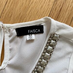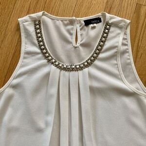 Faisca Beaded Jewel Embellished Neckline Sleeveless White Blouse Size Medium