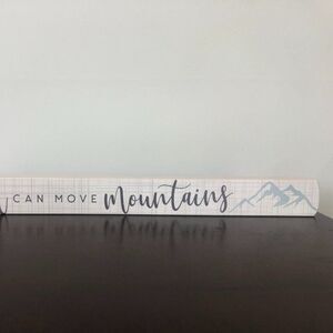 Faith Can Move Mountains Wooden Décor Approximate measurements: 15.75" width x 1.5" height x .75" depth Smoke-free home