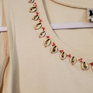 Vintage Retro Neutral Color Sleeveless Blouse With Seashells & Beads