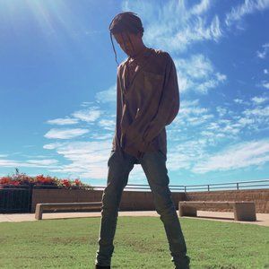Made of Viscose and Fine Silk. Very flow-y and makes you feel beautiful like sailing on a yacht with your hair blowing in the wind.