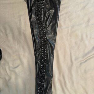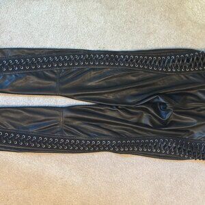 These are vintage, impossibe-to-find Faith Connexion faux leather biker pants in perfect condition - Size 40 (EU sizing, Size M or 6-8 US). They are 16" across at the widest point of the waist. 27" inseam and 35.5" Length