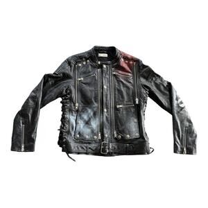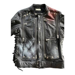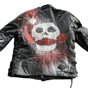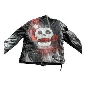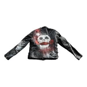Faith Connexion Men's Black Skull Print Leather Jacket Size Medium