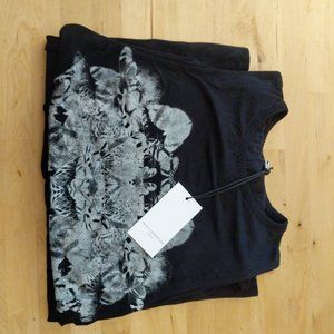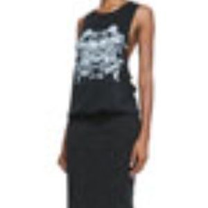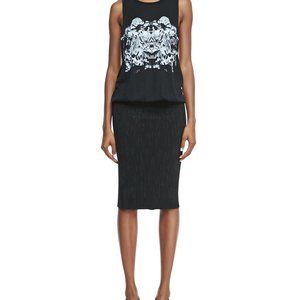 Top: 97% Viscose, 3% Elastane Skirt: 65% Viscose, 35% Polyamide Hand wash Work a bit of rock'n'roll into edgy spring looks with this figure-hugging graphic print sheath from Faith Connexion Black jersey, round neckline, sleeveless, tonal white print, slight racerback, unlined Loosely draped top, form-fitting skirt Team with a bandeau and pointy toe pumps