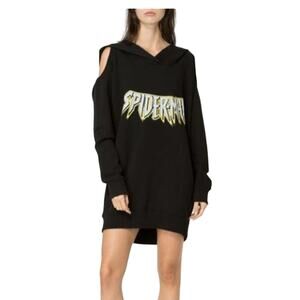 Faith Connexion Open Shoulder Spider Man Hoodie Dress Sweatshirt Size Small New