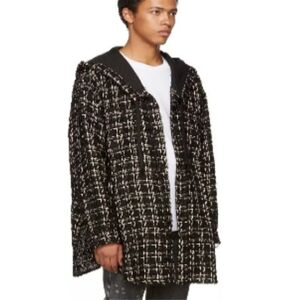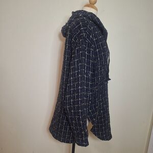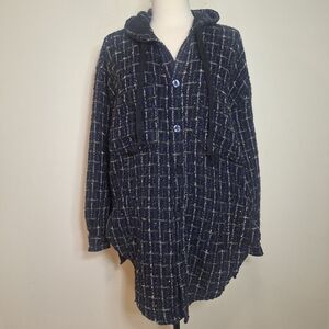 Faith Connexion Tweed oversized hooded shirt black/navy wool blend Unis…