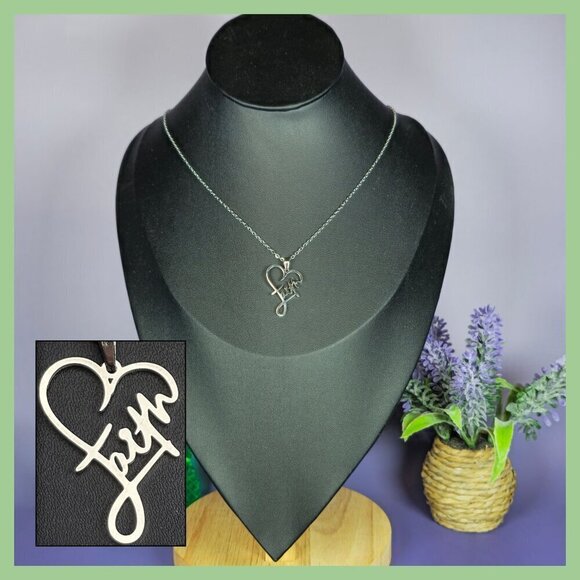 This necklace embodies the essence of faith, with a heart-shaped pendant elegantly inscribed with the word "Faith." Suspended on a sleek chain, it serves as a gentle reminder to hold on to one's beliefs. Perfect for daily wear, it adds a touch of inspiration and grace to any ensemble.