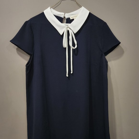Beautiful lightweight deep navy top with white color & tie Slight discoloring under arms