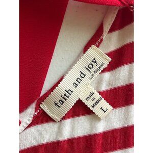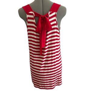 Faith & Joy Red & White L Striped Sleeveless V-Neck Tank Top With Back Bow Tie