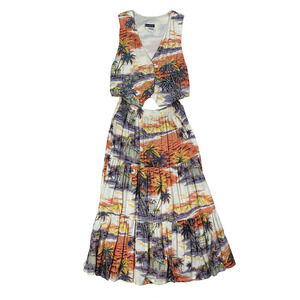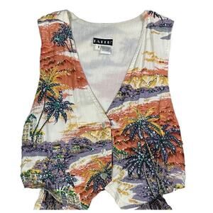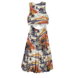 This Faith long tiered skirt with vest with sequins is the perfect ensemble for any summer day. The set features a tropical print skirt and an adjustable vest with sequins for a subtle but eye-catching sparkle. Fabric is lightweight and comfortable, ensuring you can stay cool even in the heat.