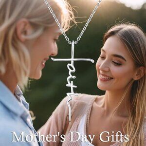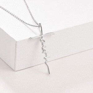 Faith Necklace for Women 925 Sterling Silver Cross Pendant Necklace Birthstone I