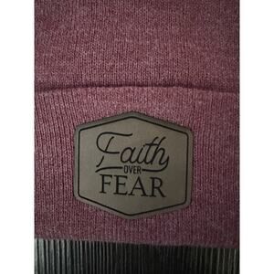 Faith Over Fear Cuffed Beanie Hat Cozy Winter Snowboarding Skiing Hiking Maroon