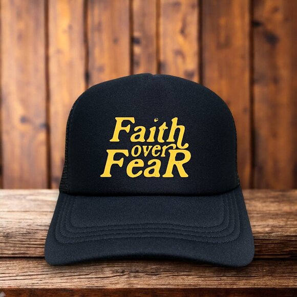 Faith Over Fear Mens Trucker Hat Black Christian Inspiration Blessed God Cap