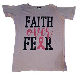 Faith Over Fear Pink Ribbon T-Shirt 1X Breast Cancer Awareness Fight