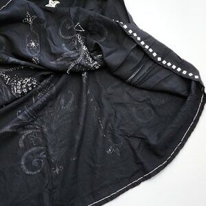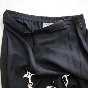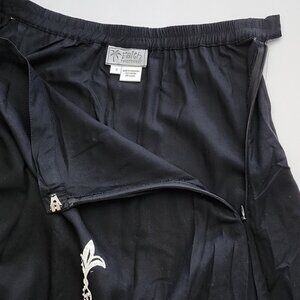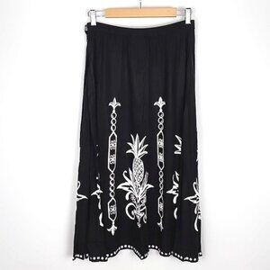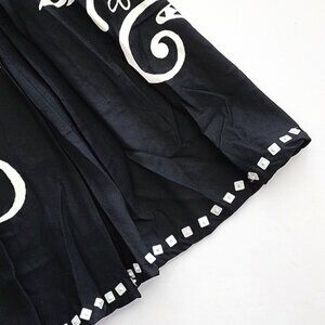 Faith Resortwear Black Long A-Line Skirt White Pineapple Print Sequins Sz Small