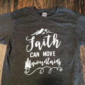 Graphic tee in Women’s L. Excellent used condition, no flaws. “Faith Can Move Mountains”.