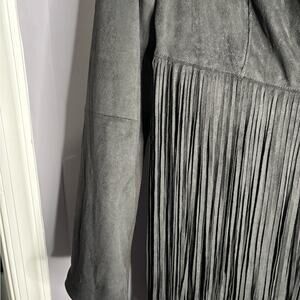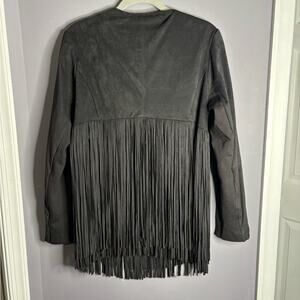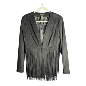 Faith & Zoe Black Faux Suede Jacket With Fringe Hem & Clasp Closure Size Large