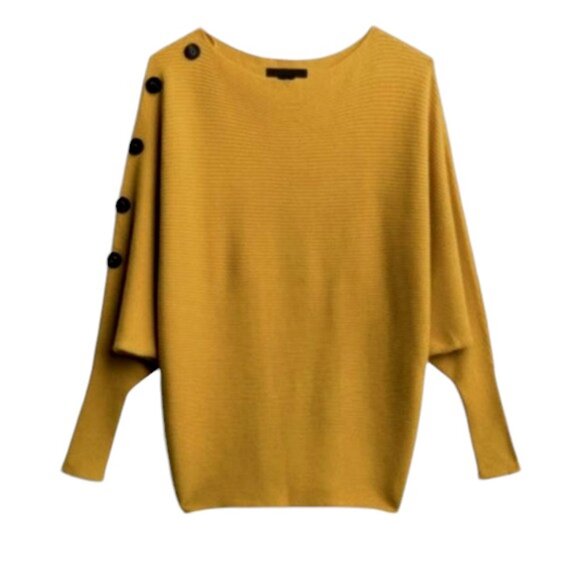 Faith + Zoe Doleman Fall Sweater Button Detail Mustard Yellow Med. Stitch Fix