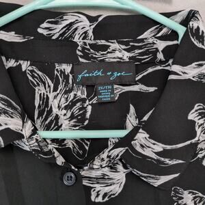 Faith & Zoe Women's Plus Size 2X Black White Floral Sheer Button Up Blouse Top