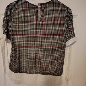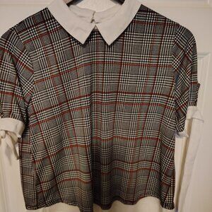 Faith and Joy by Monteau Checked Hounds tooth Plaid Collared Blouse Top