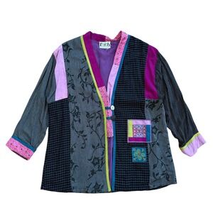 Faith by Celia Forrester Patchwork Kimono Jacket Abstract Print Women's