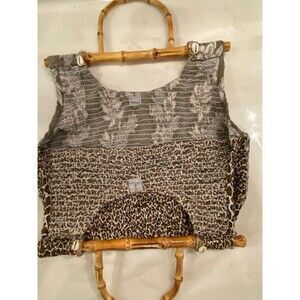 Faith by Celia Forrester Smocked Unique Boho Hipster Handbag With Bamboo Handles. Possibly vintage??
