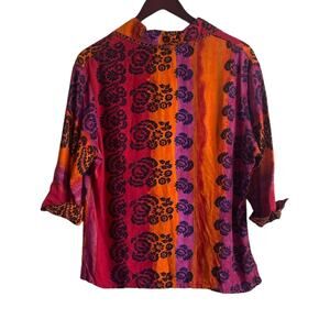 Faith by Celia Forrester Women Top M Vibrant Multicolored Floral Beaded Collar