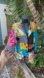 You don’t have to wear this jacket to a festival but it is the coolest. A patchwork of sunflowers poppies some polkadots. Some oversize daisies is over sequined in random spots. Two front patch pockets. One cuff is striped. The other is polkadot. This is a soft rayon fabric unstructured jacket. It’s marked a medium, but I’m going to list as a large. It could actually work for an extra large a little snugger. So unless you like it oversized, I think large would be perfect in excellent condition.