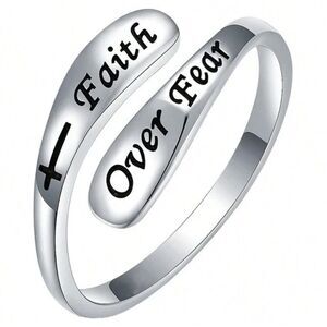 New silver faith over fear wrap around ring that is size adjustable due to open design.