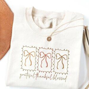 Faithful Thankful Grateful Blessed Shirt, Thanksgiving Bow Shirt