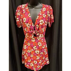 Adorable dress in Euc pink, red , hot pink and white tie front . 23”pit to pit 34”L 803