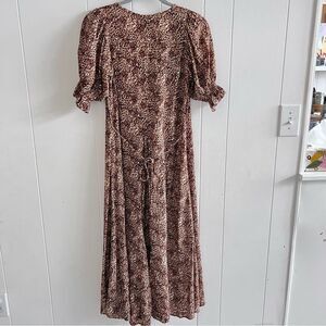 In excellent condition from a smoke and pet free home. Please review all photos before purchase and bundle for a great discount. Similar dress worn by Kate Middleton. The dress features a shirred panel to gently define your waist, Has a self tie in the back so you can adjust the fit. Perfect transitional piece for fall., elasticated puff sleeve details and finished with a floaty A-line skirt.Hand-dyed rayon crepe material. Charlie Leopard color. You can dress it down with white sneakers and a jean jacket or dress it up with heels and blazer. Perfect for any season and occasion