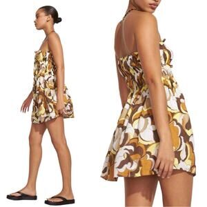 Faithful The Brand PALMIRA Mini Dress ONASSIS Retro Print NWT linen USA 6