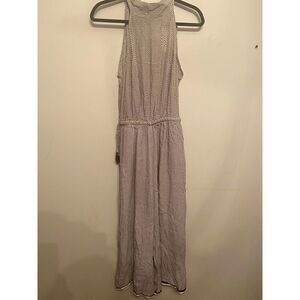 Faithful The Brand Jumpsuit High Neck with Open Back White Brown Size Small