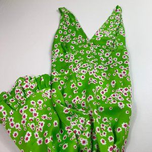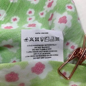 White and pink floral print satin midi slip dress. Looks darker in pictures. See photos for measurements.