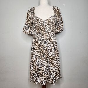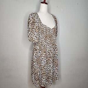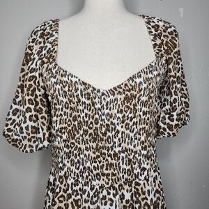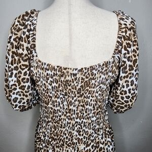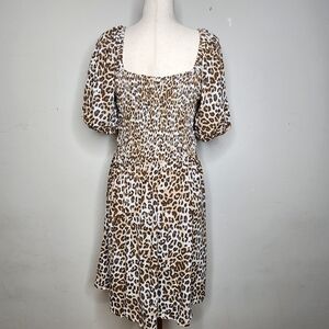 Faithful the Brand Ilaria Smocked Leopard Print Mini Dress Size Large