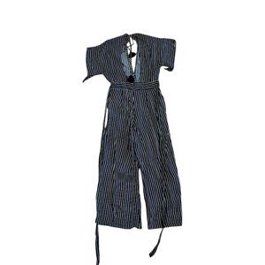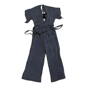 Faithful the Brand Navy Striped Open Back Plunge Cedric Jumpsuit 4