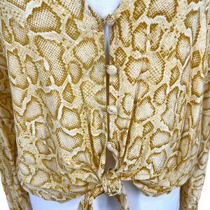 Faithfull The Brand Aira Knot Shirt Yellow Snake Print Long Sleeve Size 4 Small