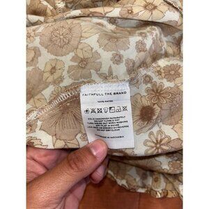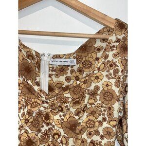 Faithfull The Brand Beige Balloon Sleeves Back Zipper Floral Mini Dress Women's Size XS