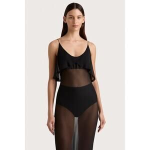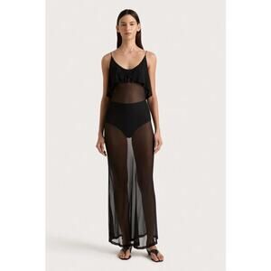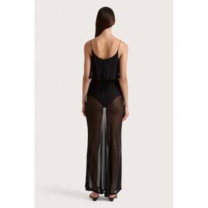 Faithfull The Brand Black Vestlia Sheer Silk Maxi Slip Dress Small